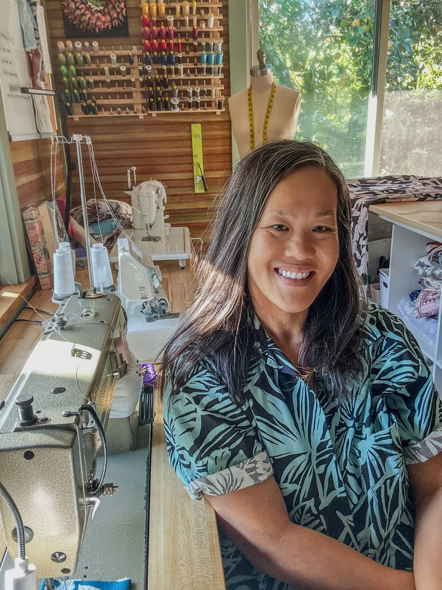 "I first came to Maui barely out of teens, when cell phones didn’t exist and no one used the internet. Life was radically slower and magically sweeter. I find myself holding that time dear, now that I’m rapidly approaching my golden mu’umu’u era. I love creating garments for people who value intentionally made Aloha Wear. It’s incredibly special and unique to Hawai’i and I am grateful for the opportunity."
